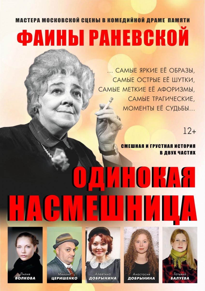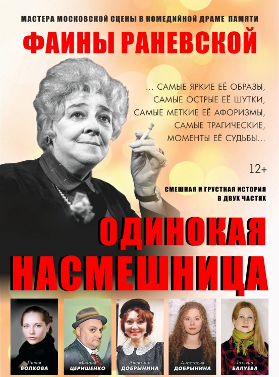 …Неповторимый, не придуманный авторами, а подлинный юмор Фаины Раневской, самые яркие ее образы, самые смешные ее анекдоты, самые меткие ее афоризмы, самые трагикомические моменты ее судьбы.Время действия — последний год жизни великой актрисы и человека.